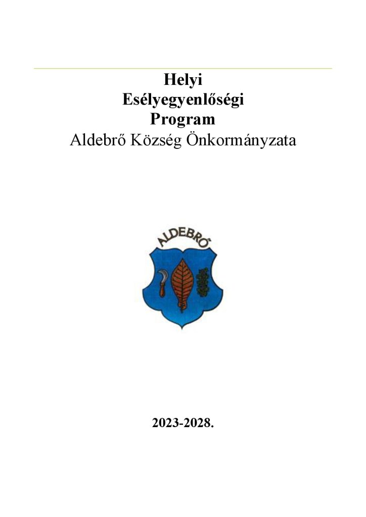 Helyi Esélyegyenlőség Program 2023-2028 A Helyi Esélyegyenlőség Program aktualizálása folyamatban van. A Lakosság észrevételt tehet a módosításokra vonatkozóan, melyet az igazgatas@aldebro.hu e-mail címre kérünk megküldeni. november, 5 9 Egyéb More