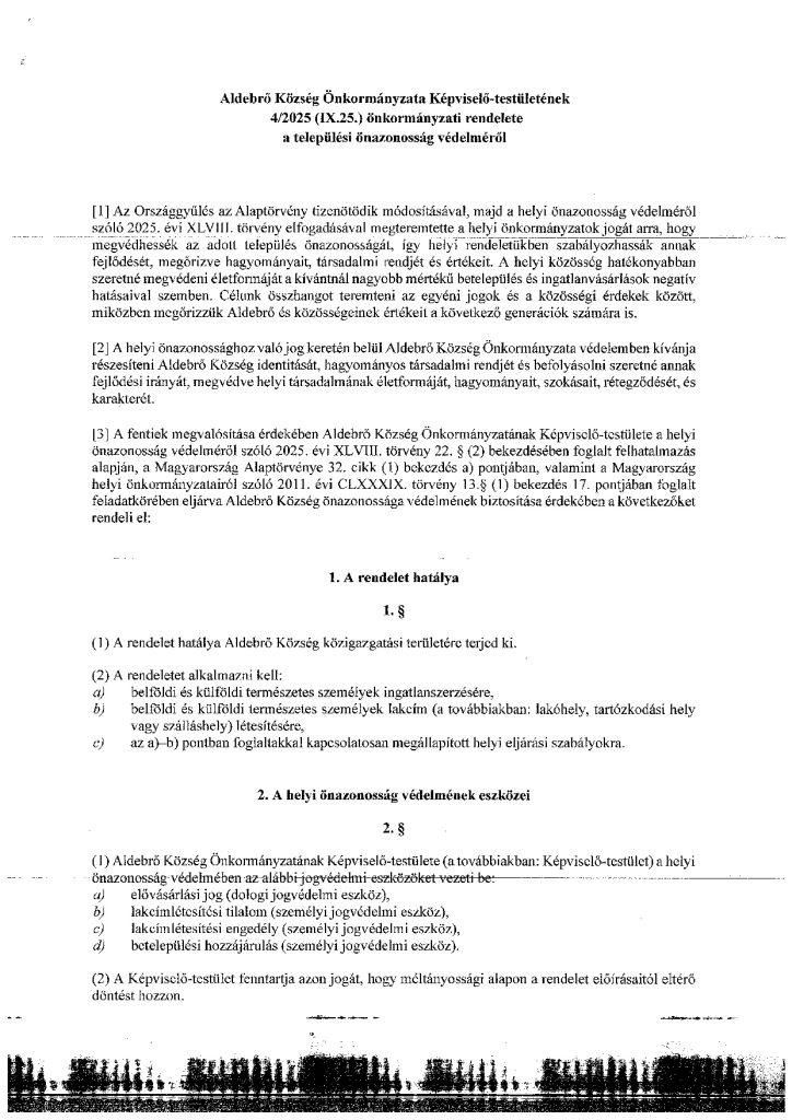 4/2025 (IX.25.) önkormányzati rendelet a település önazonosság védelméről