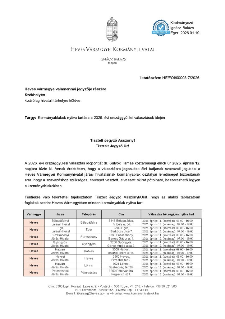 Tájékoztatás a Kormányablak nyitva tartásáról